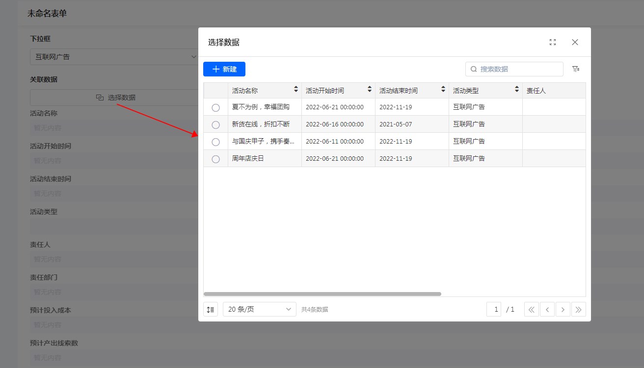 关联数据控件优化,选择数据时,表格展示数据,之前版本为下拉列表展示数据。