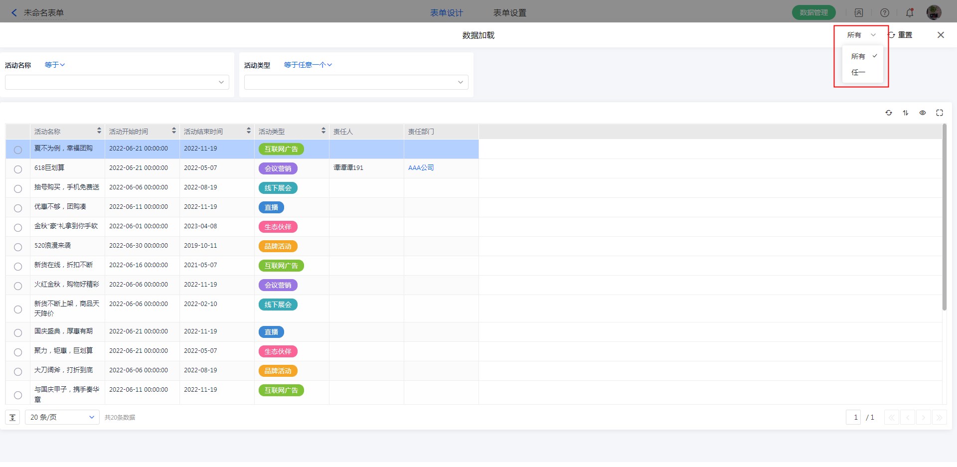 设置入口:表单设计—数据加载—筛选条件设置 效果