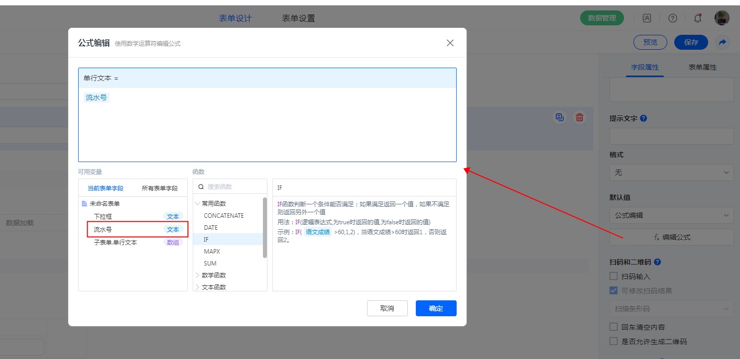 设置入口:表单字段-公式编辑,支持引用流水号字段
