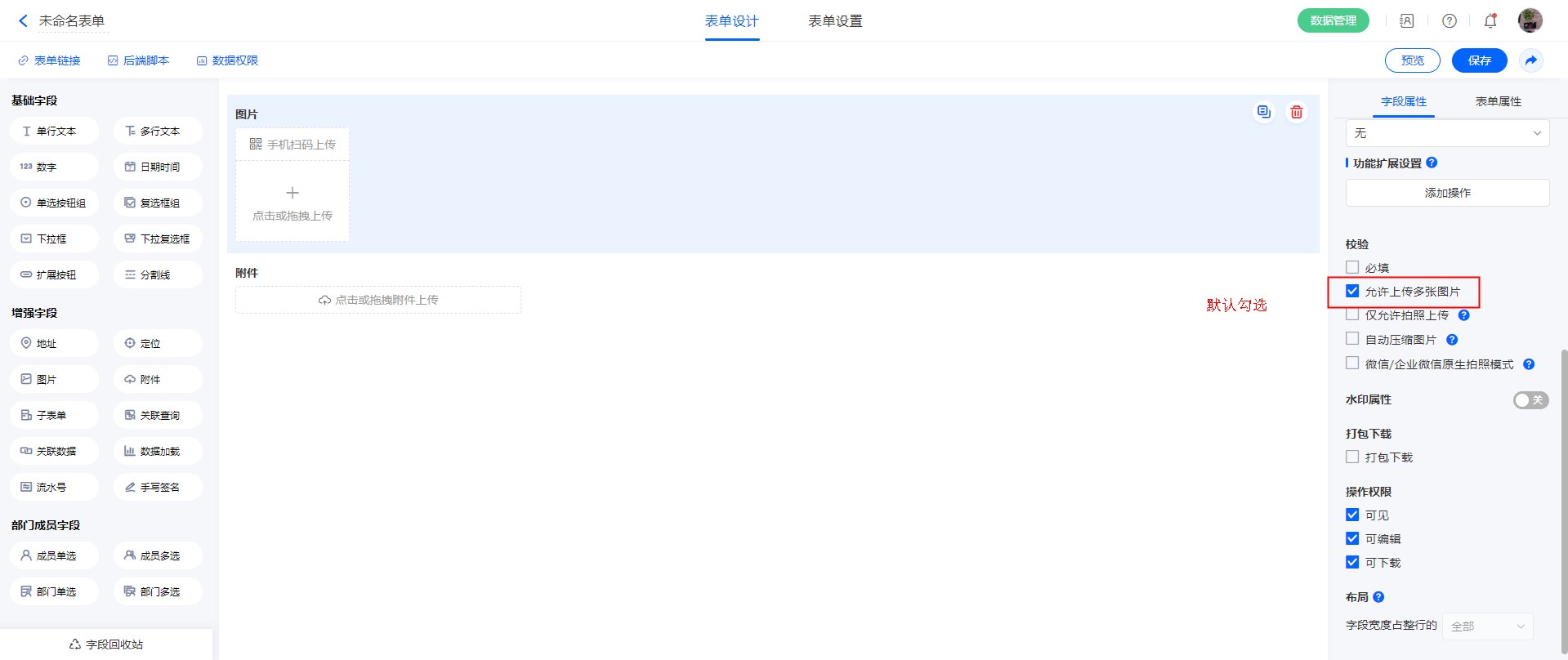 设置入口:表单设计—图片/附件—校验—允许上传多张图片