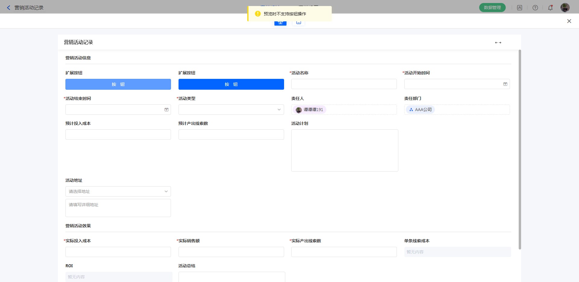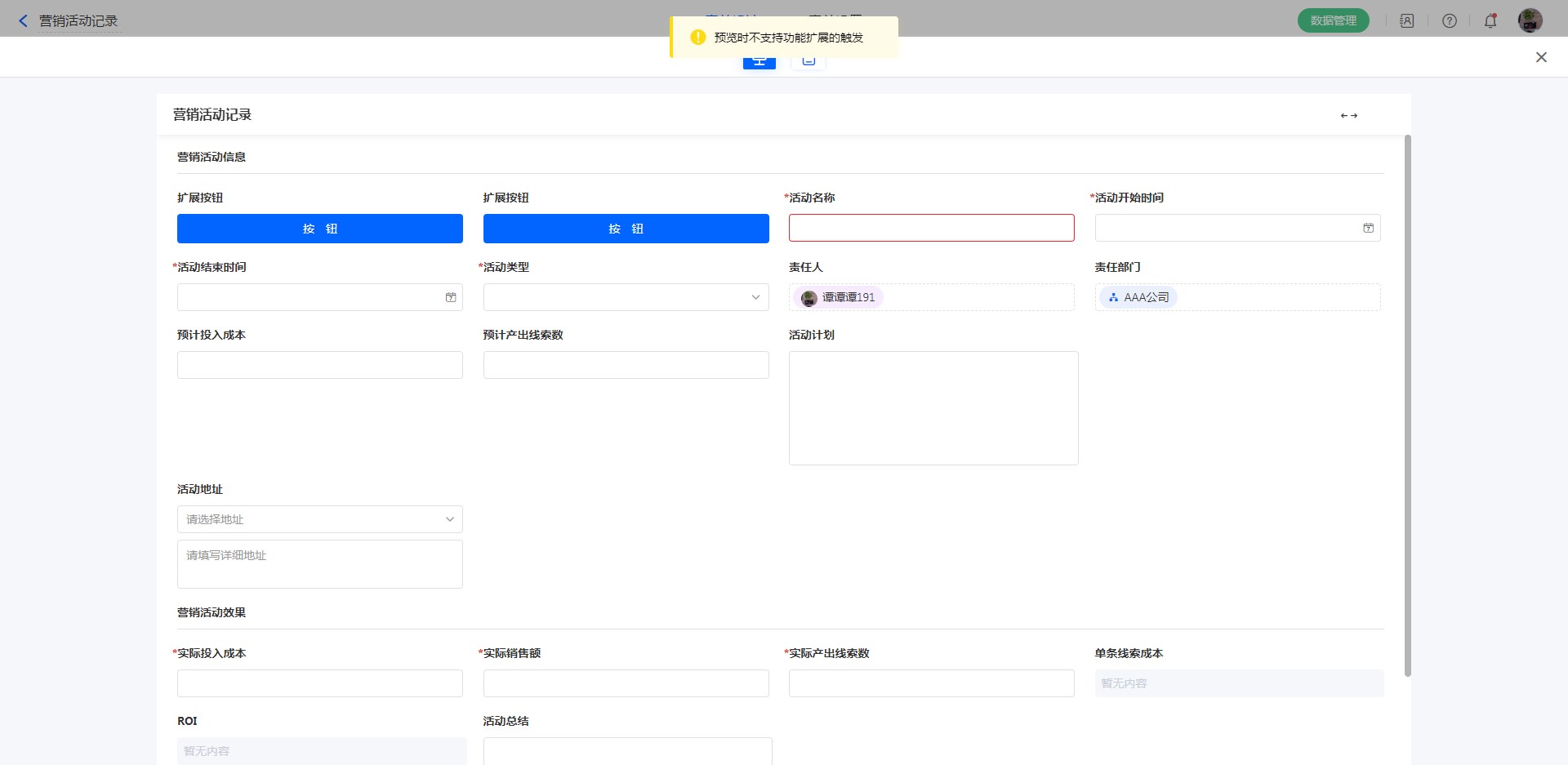 • 为了避免预览时触发扩展影响到实际数据,现版本中,表单预览不支持触发扩展。