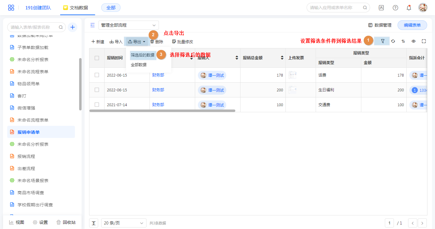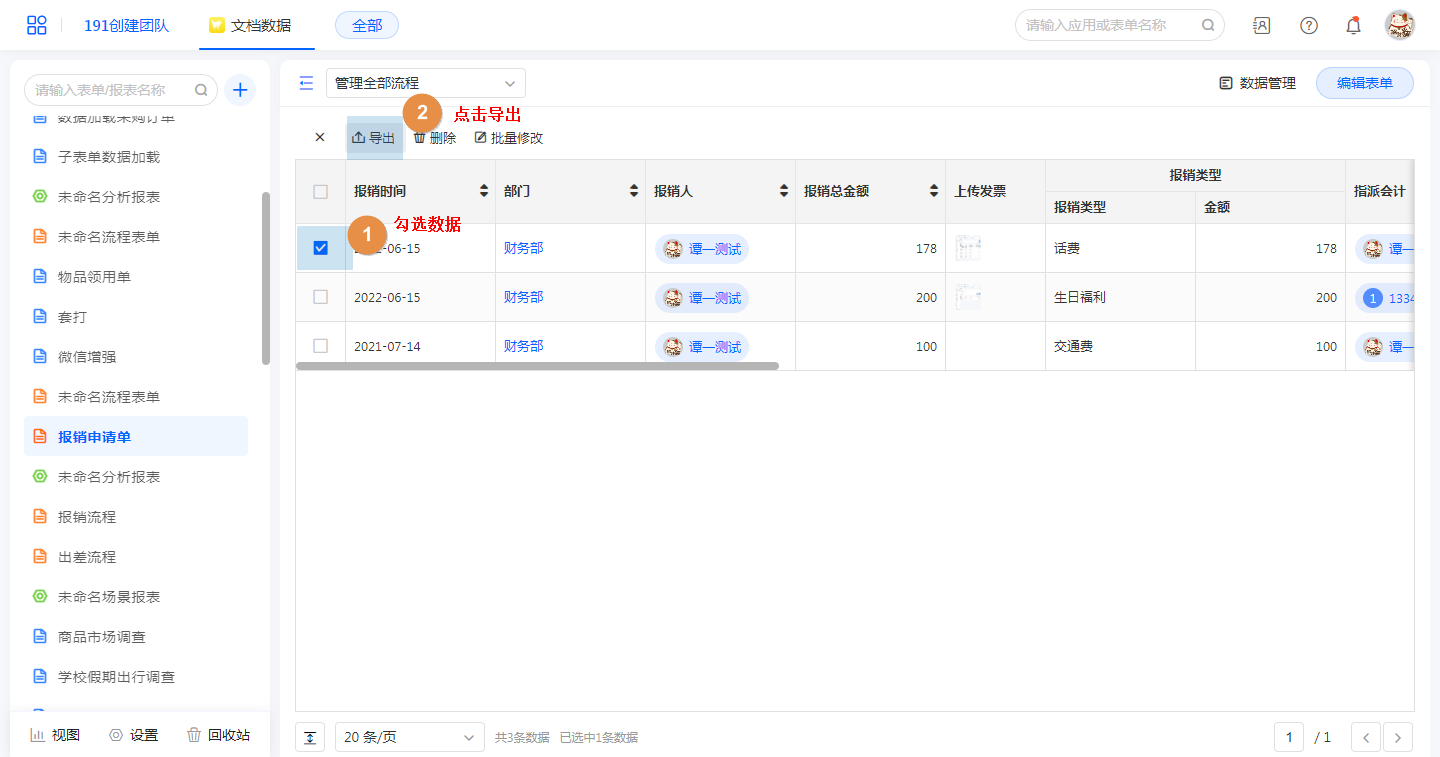数据管理中勾选数据,点击【导出】