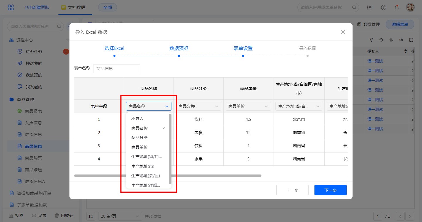 在【表单设置】时可检查字段是否匹配,还可手动调节设置。