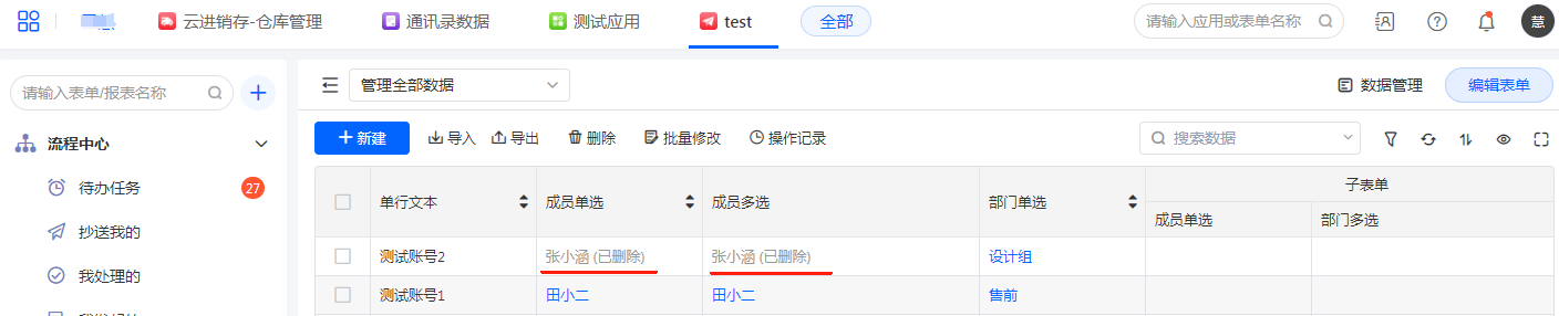 • 导入入口为【表单】——【数据管理】——【导入】。