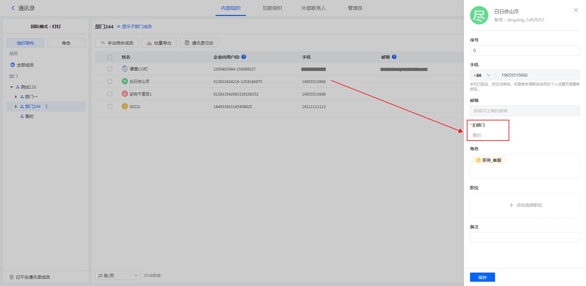 - 平台通讯录中默认会显示主部门信息,首次使用主部门功能时,建议手动同步更新信息后再使用。