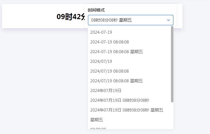 实时时间组件的显示格式目前支持以下 14 种: