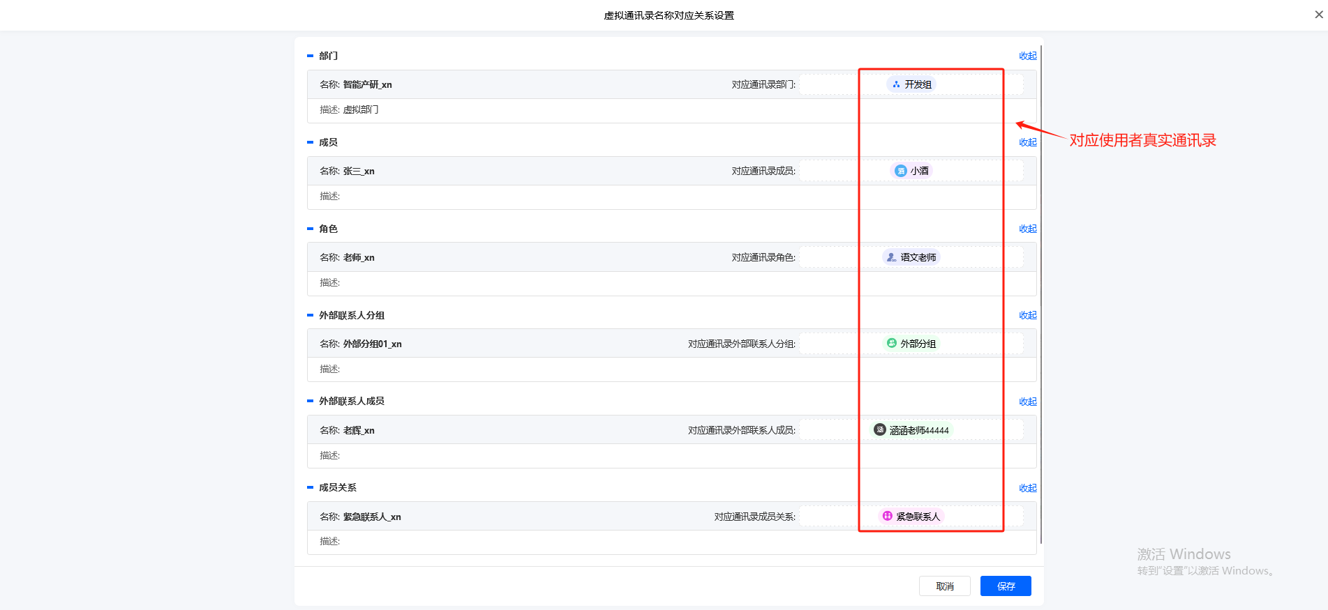 虚拟通讯录名称对应关系设置