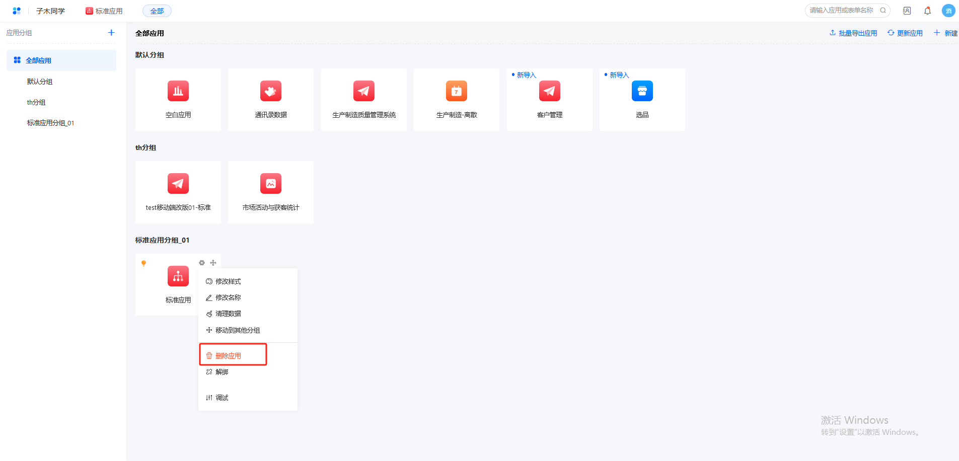 2)标准应用删除后,支持再次导入安装,多应用情况,支持更新安装回来。