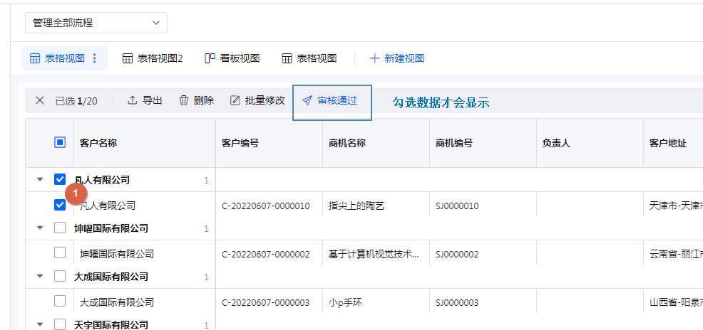 访问权限组,勾选2条数据,1条满足条件1条不满足条件,点击按钮时提示只有1条满足条件,确认执行后,这一条数据的报价状态改为 审核通过。