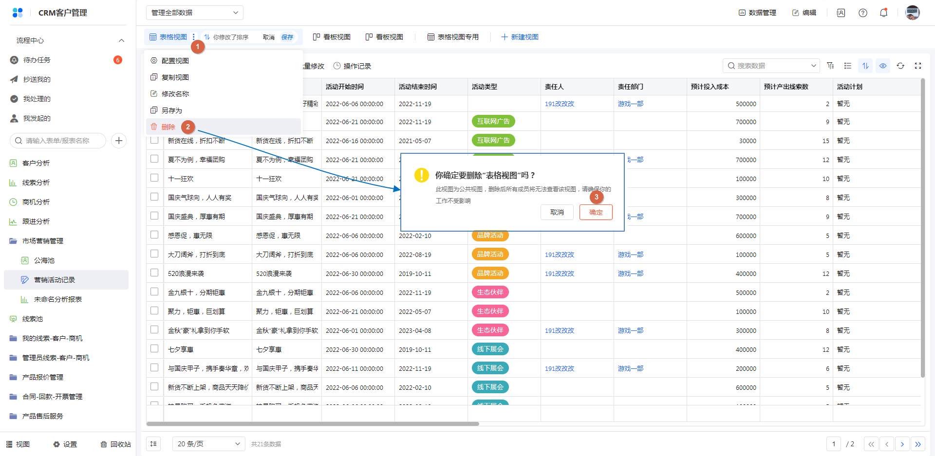 标准应用的公共视图不支持修改删除,个人视图支持修改删除。