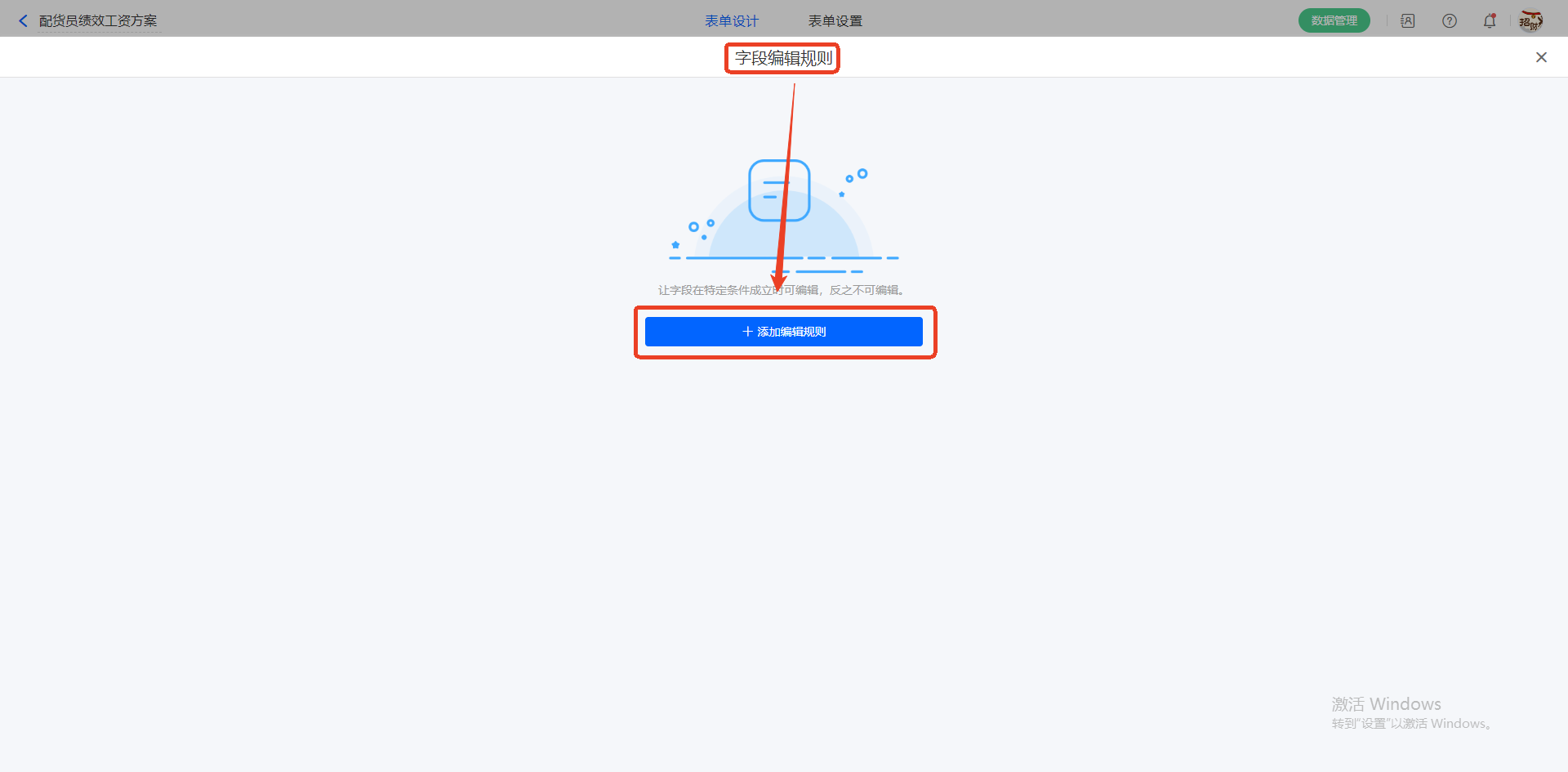 - 在字段编辑规则面板,点击【添加编辑规则】。