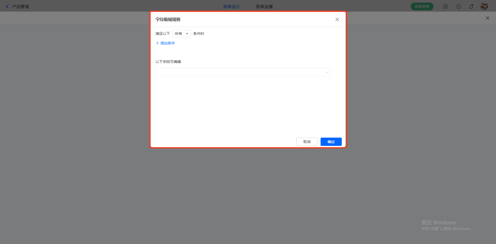 - 所有:所有条件必须同时满足才能编辑后续字段。