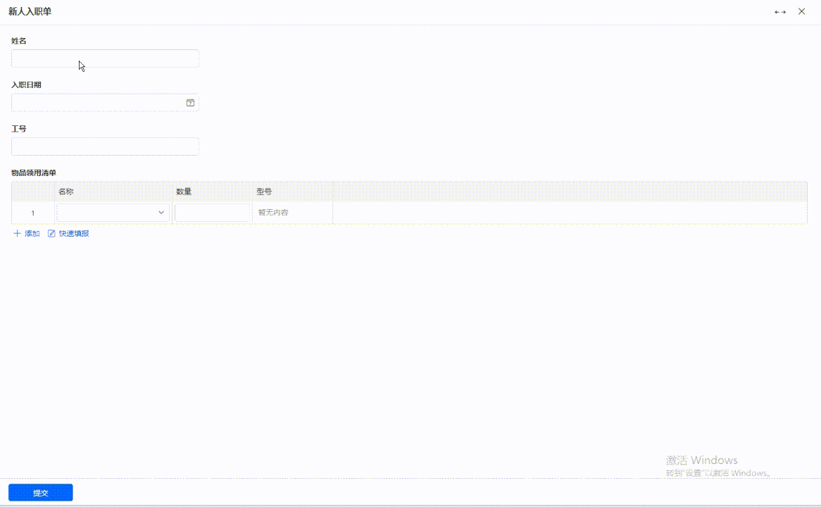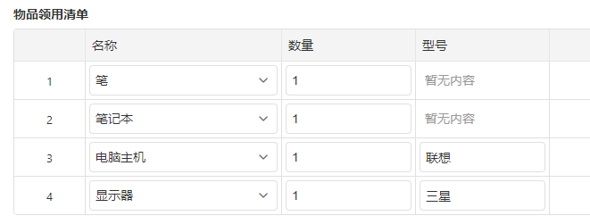 如新员工入职物品领用时,会领用电脑等贵重物品,则需要记录型号,如果是笔等普通物品,则不需要。