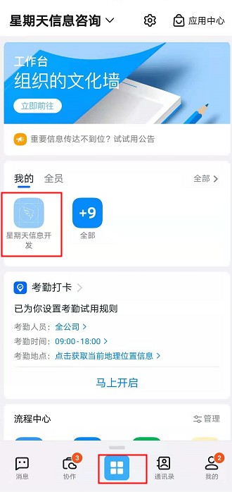 - 在消息列表-工作通知中,收到推送消息,点击消息可以进行处理。