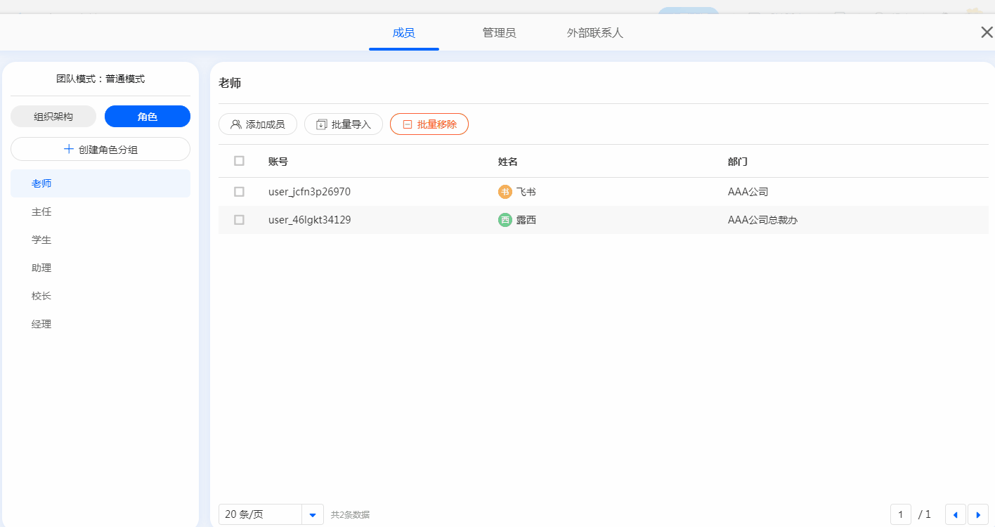 2. 批量导入成员。