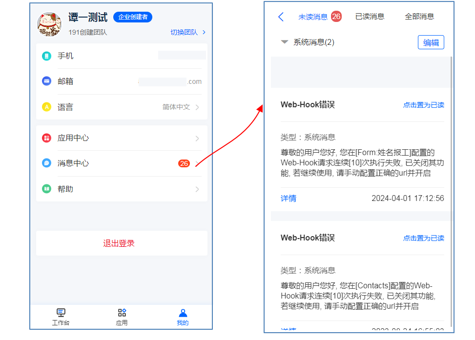 • 消息中心