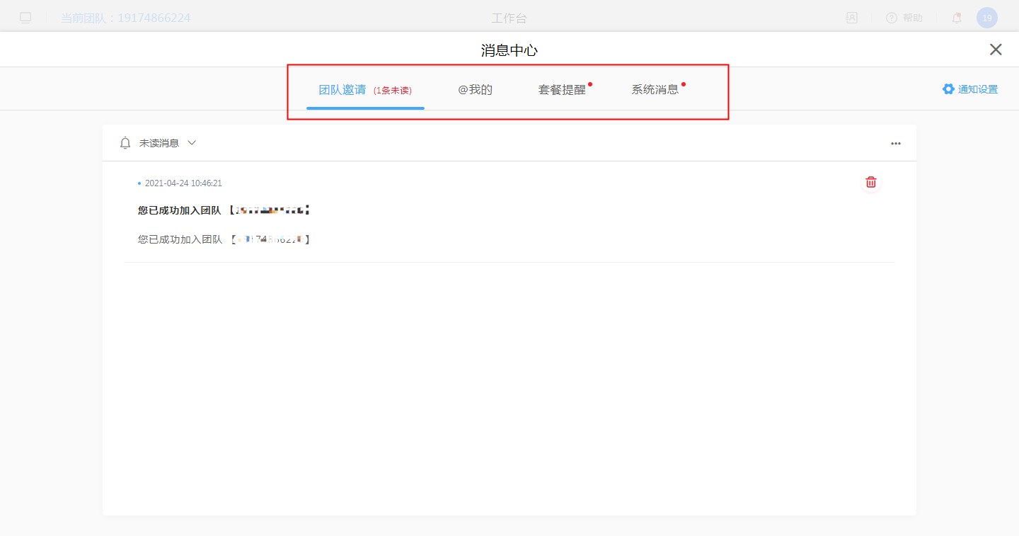 系统消息就包括数据视图执行失败的消息、功能插件审核以及应用审核通过与否的消息。