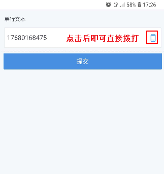 | 2、电话号码 | 0开头的区号-座机号-分机号 其中区号和分机号可选 如果预设的数据格式为手机号码或电话号码,可以在移动端直接拨号。 |