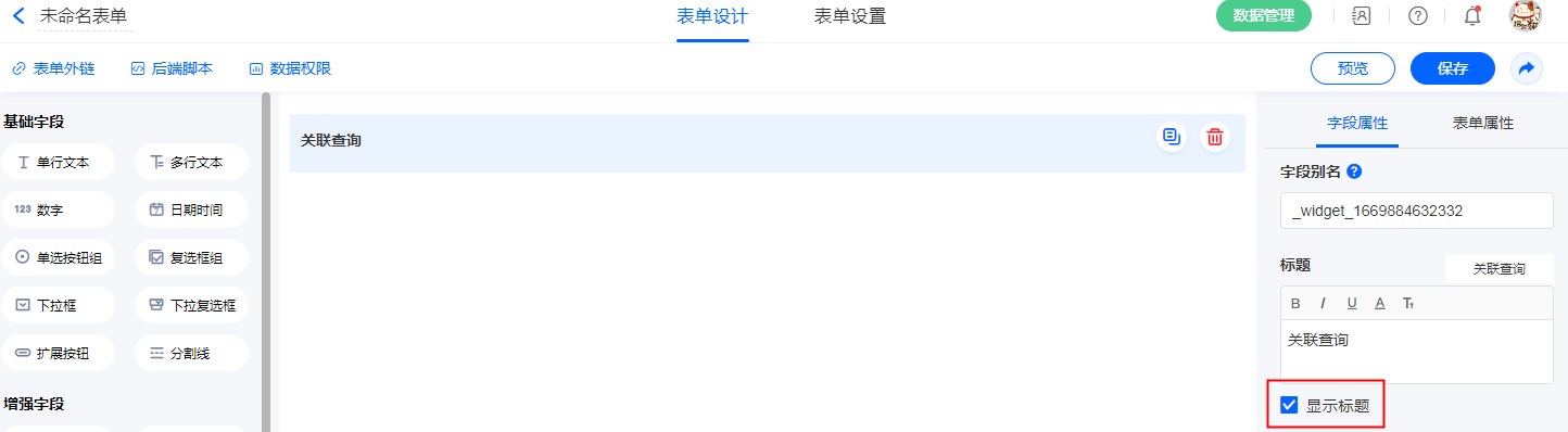 - 「关联查询」查询出的数据不会真实存入当前表单,在数据管理和数据表中不展示。