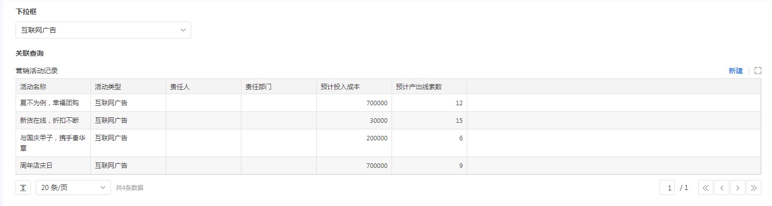 关联查询作为单独的查询展示功能,可以自动查询出其他表单中的一条或多条数据。