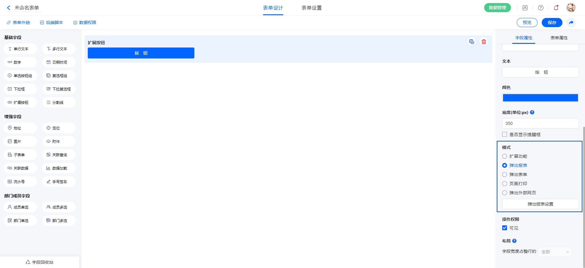 设置弹出报表后点击按钮就能弹出目标报表。