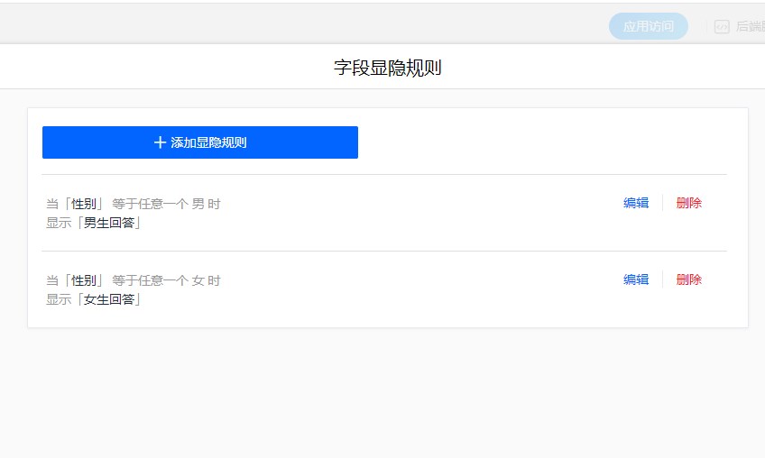 1. 设置显隐规则,单选按钮组当选择男时,出现“男生回答”控件,当选择女时,出现“女生回答”控件。