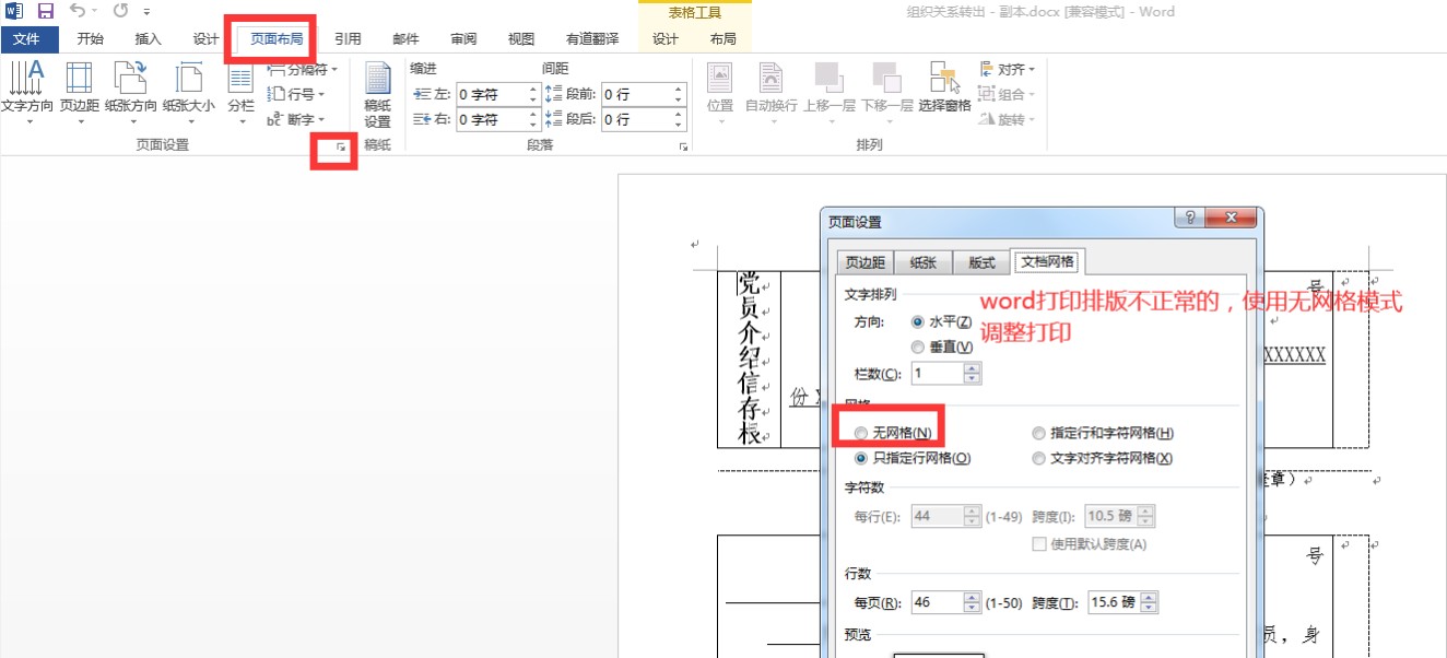 11、如果打印出文档格式和本地Word文档有出入,可以将Word文档修改无网格模式,再上传打印。