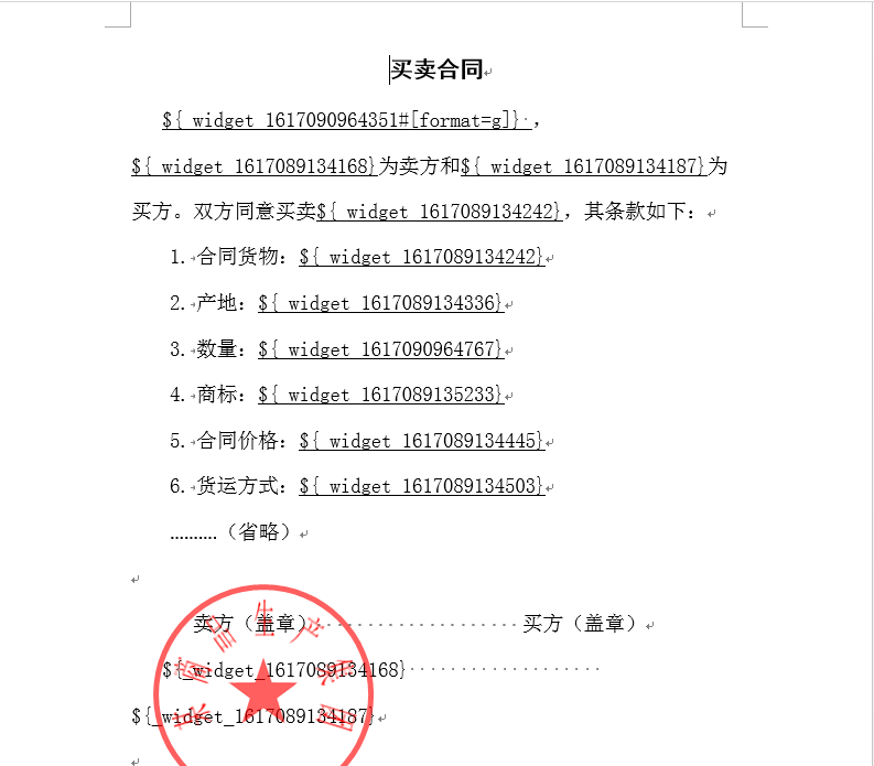 场景:要将表单中的某些字段填入合同中,并打印合同。