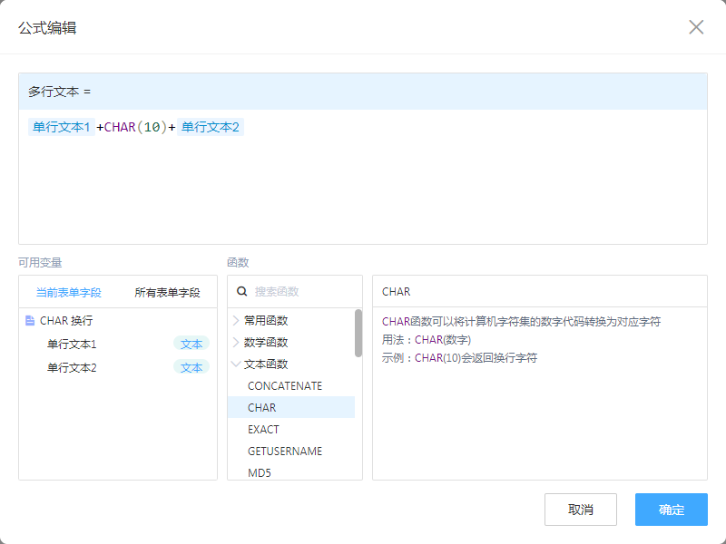 在“多行文本”中需要换行等操作使用。