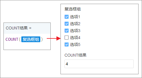 一般用在统计子表单有多个行数据,如填入复选框,则统计复选框总共有多少个选项值。
