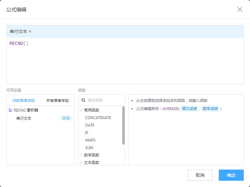 注意 RECNO() 会在每次打开页面时累计次数,无论表单是否提交,再次刷新页面都将累计+1。
