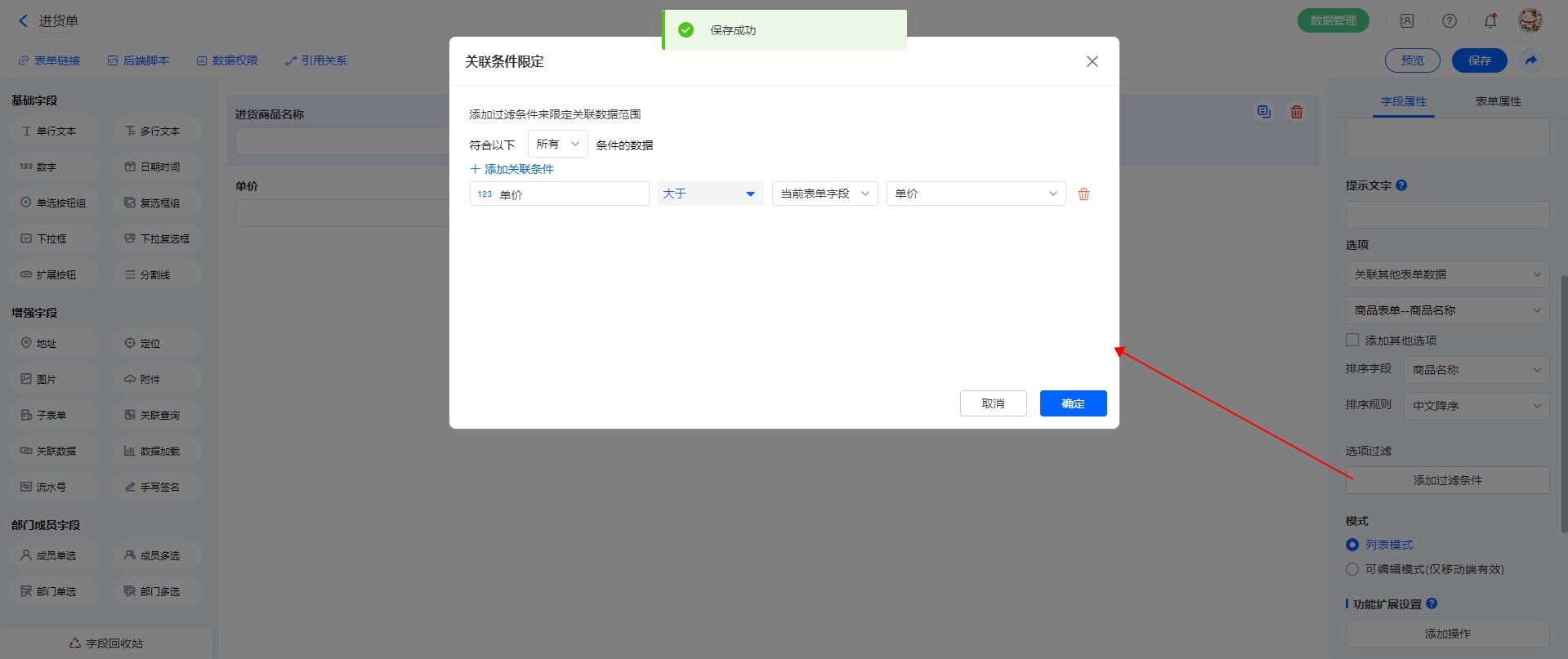 - 排序字段:支持对关联表单中的字段值进行排序。