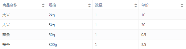 【商品表单】表单的已有数据,如下图: