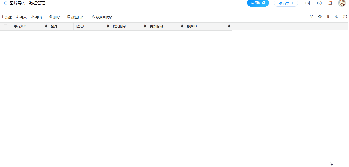 - 图片字段(包括子表单中的图片字段)支持导入图片。