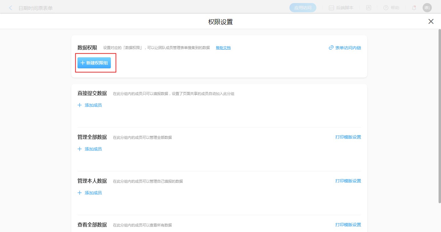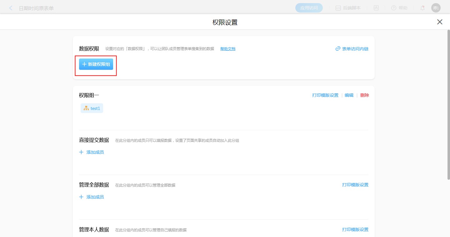 • 新建权限组一