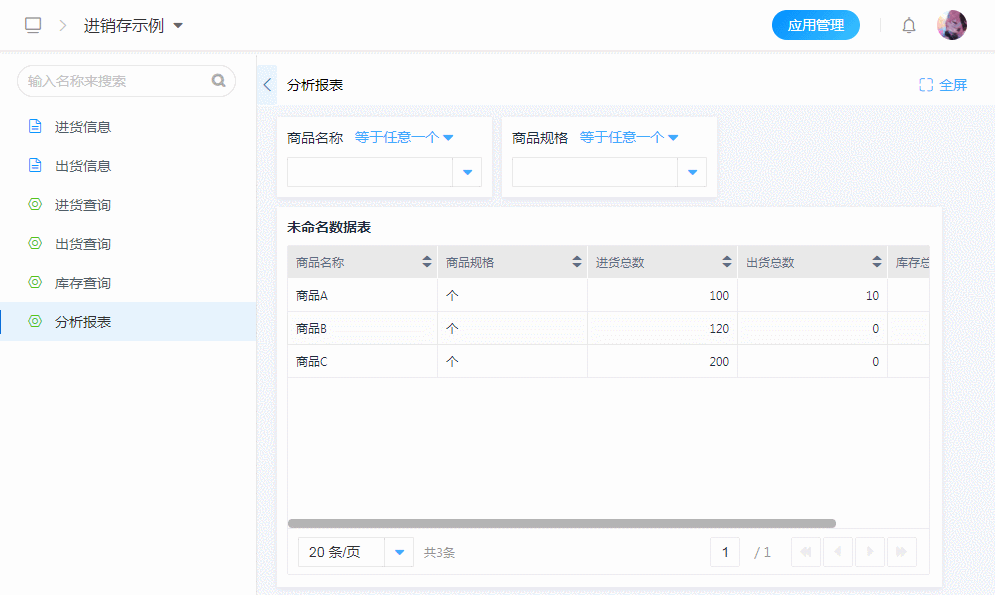 数据表适合任何场景,尤其适用于需要进行复杂交互的场景,如:运营分析系统中,商品销售查询和商品销售详情表单中就利用数据表的功能,实现了复杂交互场景的实现。
