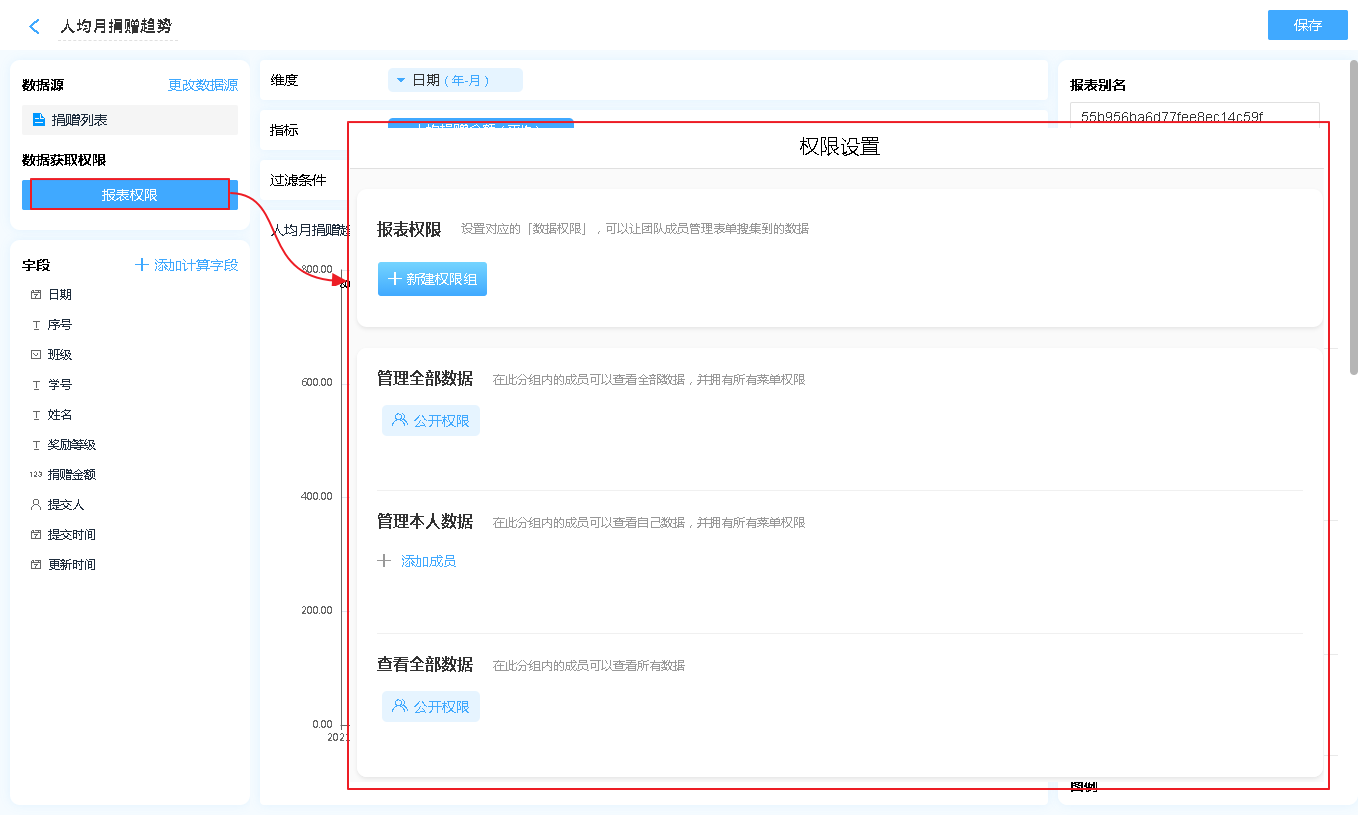 报表权限是指该报表的数据哪些人可以操作报表的数据,分别有什么操作权限。