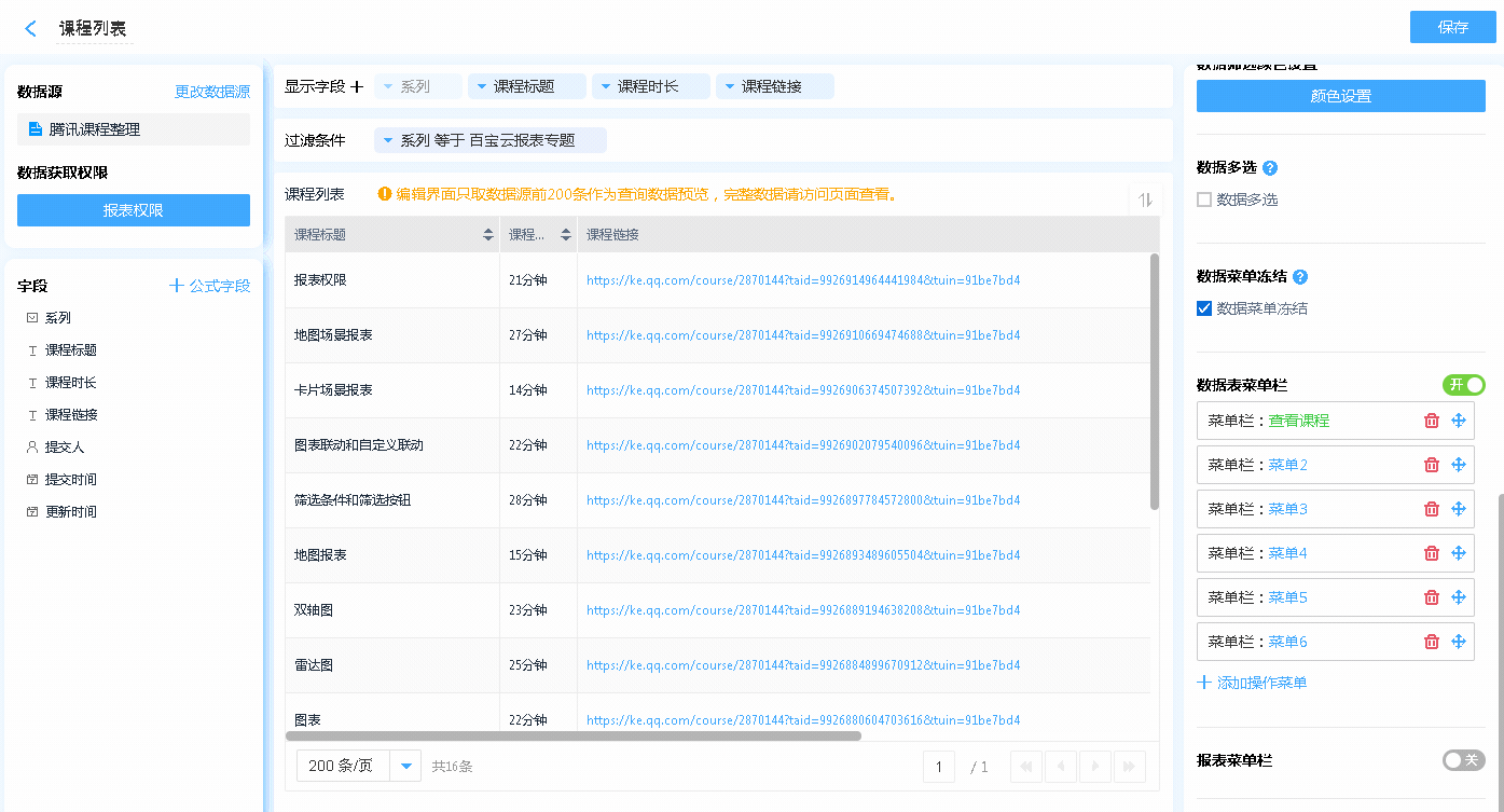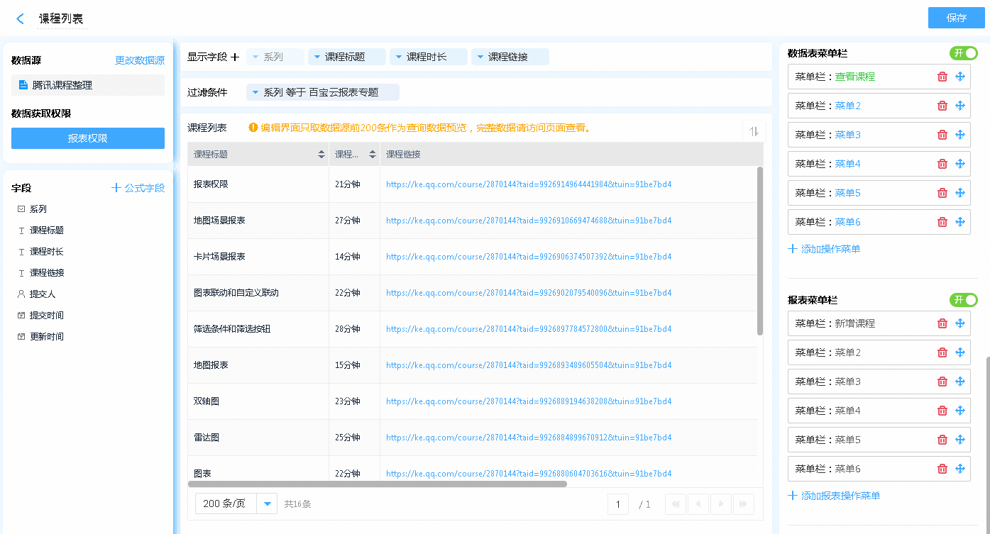 第四步:配置好数据表的报表权限,保存数据表。