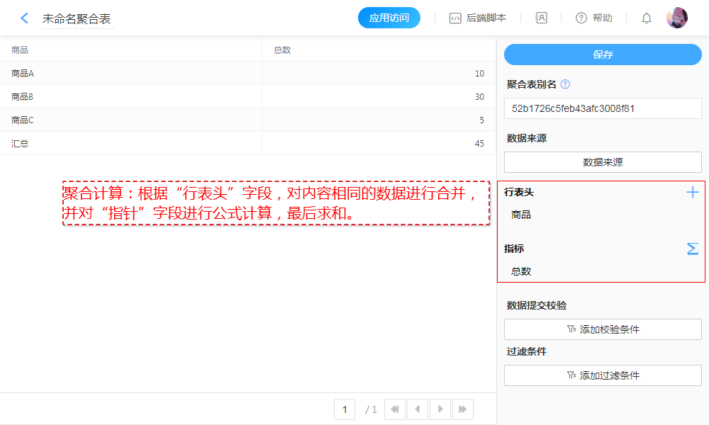 选择需要聚合计算的表单。