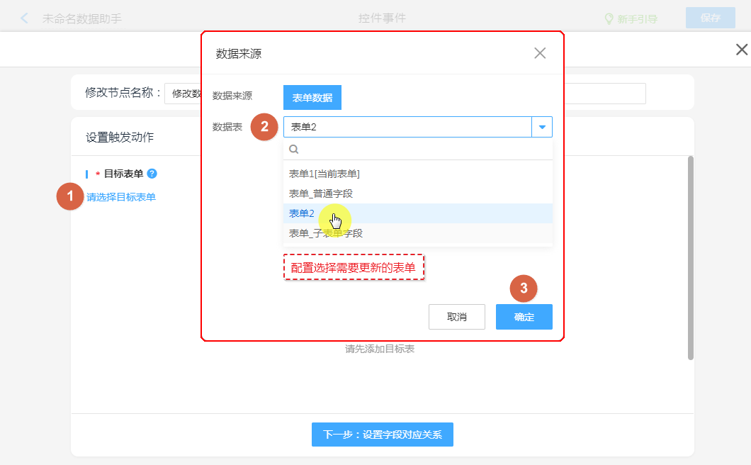②、设置要更新的子表单。